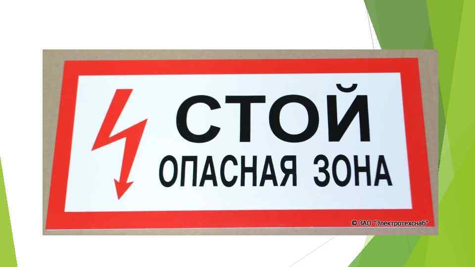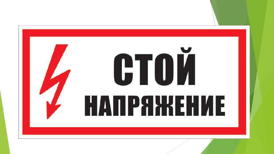 Осторожно! Электрическое напряжение На опорах воздушных линий, корпусах электрооборудования и электроаппаратуры, на дверях электропомещений, камер выключателей трансформаторов, на сетчатых и сплошных ограждениях токоведущих частей, расположенных в производственных помещениях, на электротехнических панелях, дверцах сплошных щитков и ящиков, на шкафах с электрооборудованием различных машин и станков
