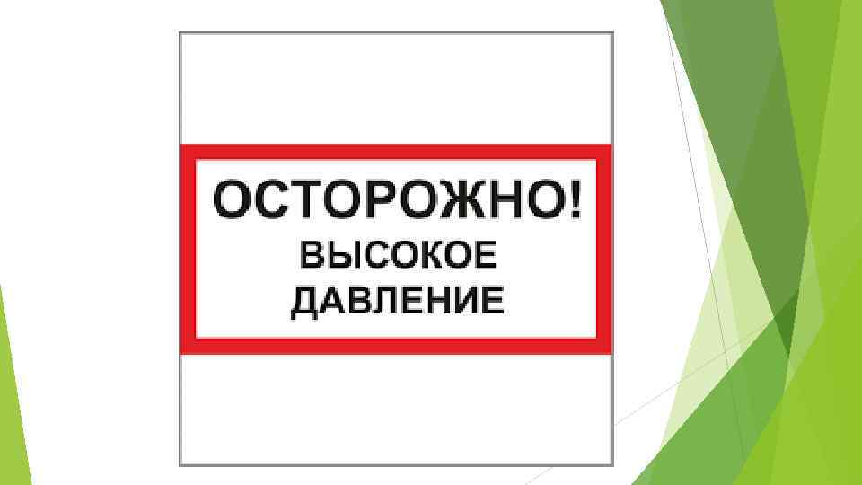 Осторожно! Высокое давление У манифольда в насосном помещении и ресивера компрессора; на участках газопровода и других участках, где оборудование под давлением