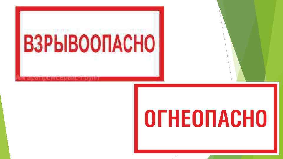 Осторожно! Опасность взрыва На дверях складов, внутри складов, в местах хранения, перед входами на участки работ с взрывоопасными материалами и веществами, на таре для хранения и транспортирования этих материалов и веществ