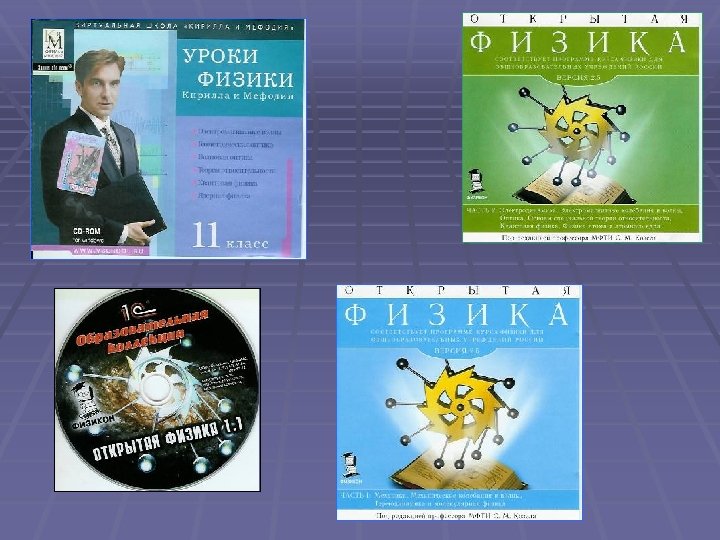§ Источниками демонстрационных материалов служат имеющиеся в школе коллекции цифровых материалов на компакт-дисках, мультимедийные курсы и учебники, ресурсы Интернет и собственные разработки, чаще презентации уроков. Презентации используются при объяснении нового материала, при повторении пройденного материала и при организации текущего контроля знаний (презентации-опросы). Источниками иллюстративного материала для создания презентаций служат: CD диски мультимедийных курсов физики, энциклопедий или CD дисков-сборников электронных наглядных пособий по физике (совместный диск «Образование» фирм 1 С и «Дрофа» , фирмы «Физикон» ); Материалы из Интернет-источников; Материалы, созданные собственными руками или руками учеников школы – видеоролики, отсканированные рисунки с различных печатных изданий.