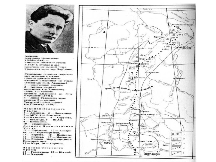 Вопрос А. Какой вклад каждый учёный внёс в изучение Урала? Заполни вторую строку таблицы соответствующими буквами. 1) Алешков 2) Архипова 3) Боч и Краснов 4) Прокаев 5) Троицкий А) Определил границу древнего оледенения в 1946 г. Б) Определил границу Уральской горной страны в 1959 г. В) Определил границу древнего оледенения в 1966 г. Г) Дал наименование г. Народной Д) Составил данную карту ОТВЕТ: 1 2 3 4 5 Г Д А Б В