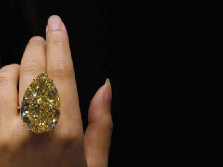 Параметры • Вес — 110, 03 карат, или 22, 06 грамма (большинство бриллиантов легче одного карата, то есть, весят не более 0, 2 грамма); • Цвет — яркий лимонно-жёлтый (большинство бриллиантов бесцветны или едва тонированы); • Чистота — VVS 1 по стандарту GIA (2. 2 по ТУ 25 -07. 1319 -77), то есть под 10 -кратным увеличением при просмотре с тыльной стороны (через павильон) «в центральной зоне различимы не более трех незначительных светлых точек или в средней и периферийных зонах не более двух дефектов в виде незначительных темных точек или полосок» ; • Огранка — «фантазийная» огранка в виде груши (Г-56) на 56 граней, 32 фасета в верхней части, 23 — в нижней. • Размер бриллианта — 3, 94 см в высоту, 2, 83 см в ширину.