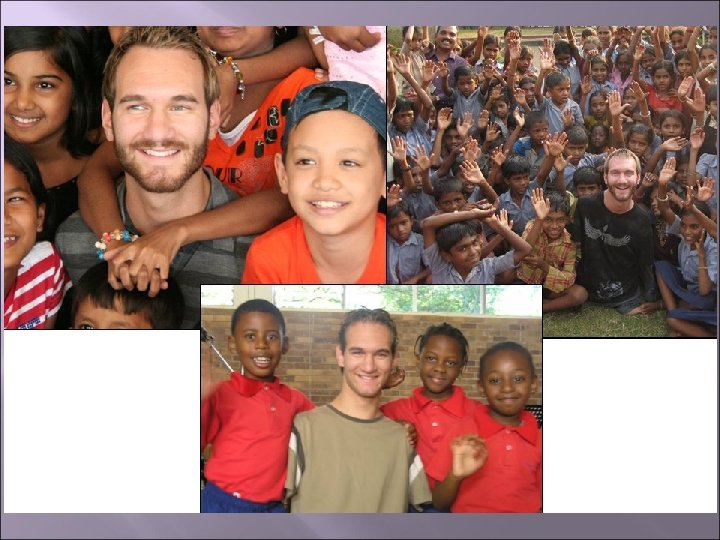 Ни к (Ни колас) Ву йчич — христианский проповедник. Родился без всех четырех конечностей. Переживая по поводу своей инвалидности в детстве, он научился жить со своим недостатком, делясь своим опытом с окружающими и став всемирно известным мотивационным спикером. Его выступления обращены к детям и молодежи с ограниченными возможностями, в надежде на активизацию в них поиска смысла жизни.