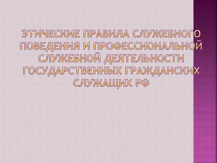 КАК ВИДА ПРОФЕССИОНАЛЬНОЙ ЭТИКИ • Специфика предназначения государственной и муниципальной службы, выраженная в ст. 2 Конституции РФ. • Социально – правовой статус государственных гражданских служащих. • Единство принципов государственной и муниципальной службы, требований к подготовке кадров для государственной гражданской службе и дополнительному профессиональному обучению.