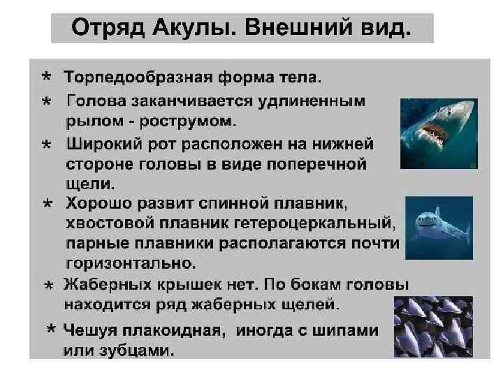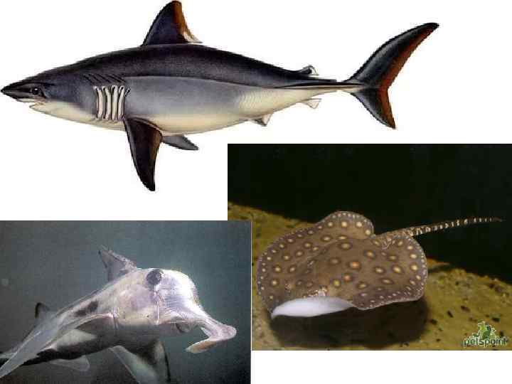 Хрящевые рыбы: акулы и скаты 1. скелет из хряща; 2. нет жаберных крышек и плавательного пузыря; 3. оплодотворение внутреннее; 4. живорождение, или яйца откладываются в специальный футляр
