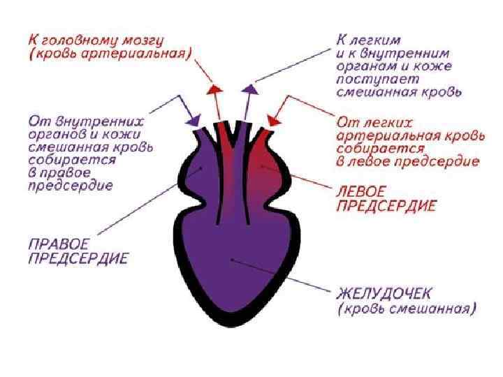 Кровеносная система венозная кровь правое предсердие артериальная кровь левое предсердие внутренние органы лёгкие желудочек больше кислорода больше углекислого газа смешанная кровь