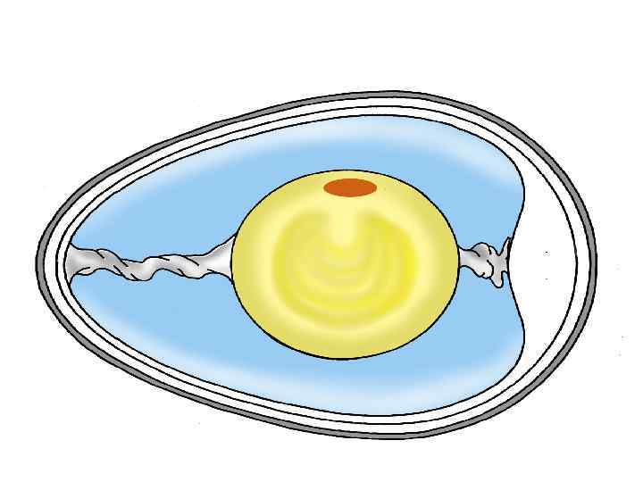 • • • Яйцеклетки анамний (олиголицетальные – бедны желтком) окружены студенистой оболочкой (белковой), которая обеспечивает сохранение формы яйца в воде. Желтка относительно немного, а необходимая для развития зародыша вода поступает извне через оболочку. • Яйцеклетки амниот полилицетальные богаты желтком. Значительно увеличена белковая оболочка (белок яйца). Формируются наружные оболочки, одна из которых плотная и обеспечивает сохранение формы яйца в воздушной среде. У пресмыкающихся она образована волокнами рогоподобного вещества и имеет пергаментообразный вид. У крокодилов и птиц из кристаллов фосфорнокислой и углекислой извести, скрепленных волокнами органического вещества, образуется прочная скорлуповая оболочка. Для доступа внутрь яйца кислорода и выделения наружу газообразных продуктов метаболизма в скорлупе образуются тонкие извитые канальцы. Часть известковых солей скорлуповой оболочки во время эмбриогенеза растворяется и, проникая внутрь яйца, используется при формировании скелета зародыша.