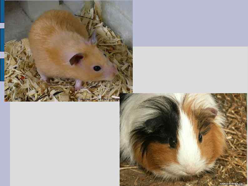 Сирийский (золотистый) хомячок Этот зверек относится к одним из самых популярных обитателей зооуголка. Очень спокойные зверьки, они не кусаются, когда их берут на руки. Они чрезвычайно подвижны и ловки, поэтому нужно быть особенно внимательным и при уборке клетки, так как зверек может с легкостью выскользнуть наружу. Ловить убежавшего зверька лучше всего тогда, когда он успокоится и легко пойдет в руки. Морская свинка Морские свинки относится к отряду грызунов. Это одно из лучших домашних животных для содержания в детском саду. Свинки миролюбивы и неагрессивны. Можно быть уверенным, что это животное никогда не укусит ребенка. Свинки очень общительны, быстро становятся ручными, их можно подержать на руках, погладить. За свинками очень интересно наблюдать. Морские свинки не создают шума, они лишь тихо посвистывают, приветствуя человека, которого узнают. Есть много пород свинок с разной внешностью, но все животные очень красивы.