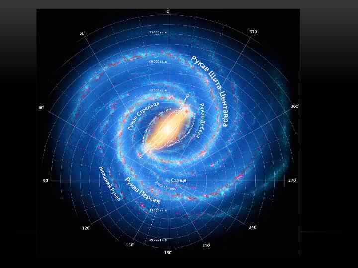 Структура нашої галактики. Сонце позначене жовтою цяткою.