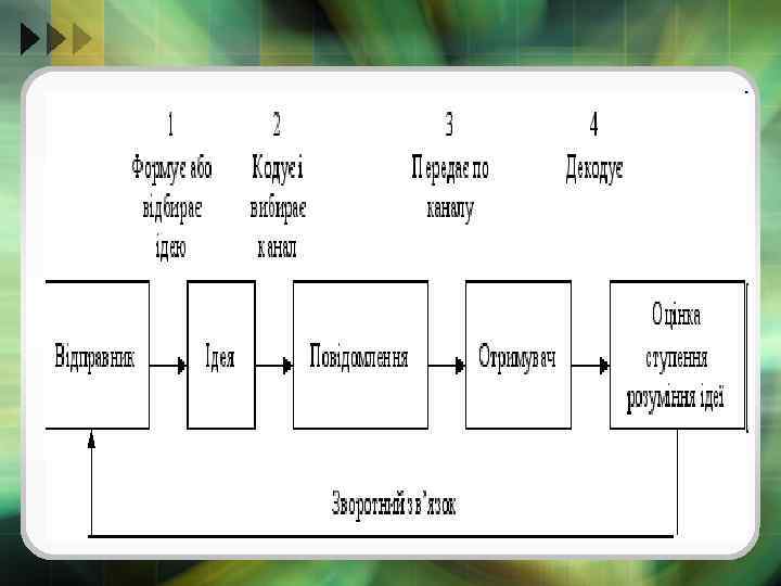 v Сучасна наука виділяє сім складових комунікації: § § § § суб'єкти комунікації засоби комунікації предмет комунікації ефекти комунікації бар'єри комунікації зворотний зв'язок середовище комунікації
