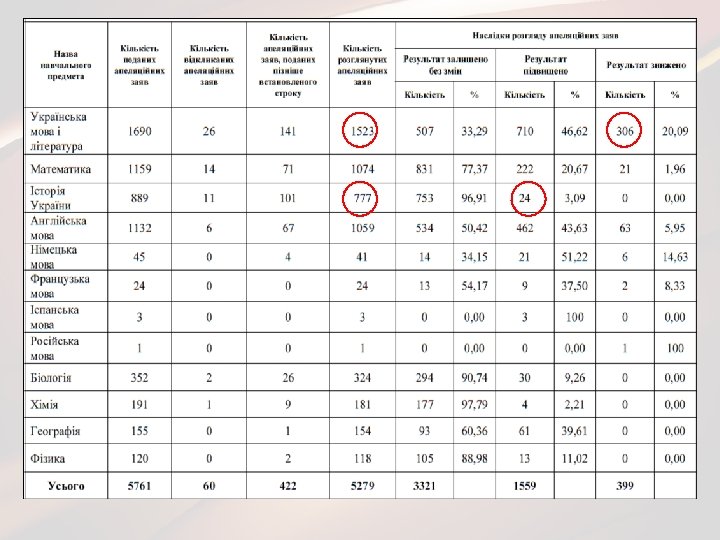 Апеляція Щодопорушення під час проведення ЗНО, що можуть вплинути на об’єктивність результатів (апеляційну заяву подає учасник, не покидаючи пункту проведення ЗНО. Бланки апеляційних заяв знаходяться на відповідному столі у вестибюлі пункту) Підстави для подання апеляції: • технологічні порушення; • неправильні, на думку учасників Щодо результатів ЗНО (апеляційну заяву учасник подає до УЦОЯО протягом п’яти календарних днів з дня офіційного оголошення результатів ЗНО. Зразок апеляційної заяви буде розміщено на сайті УЦОЯО) Підставою для подання апеляційної заяви є сумніви щодо об'єктивності визначення результатів ЗНО. тестування, дії персоналу пункту проведення ЗНО Розгляд заяви здійснюватиметься апеляційною комісією Українського ЦОЯО. Розгляд заяви здійснюватиметься регламентною комісією Вінницького РЦОЯО Інформацію щодо розгляду апеляції буде розміщено на персональній інформаційній сторінці, а також надіслано поштою.