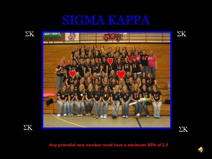SIGMA KAPPA SK SK Any potential new member must have a minimum GPA of 2. 5