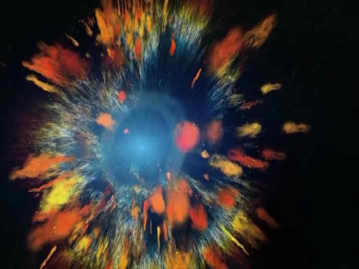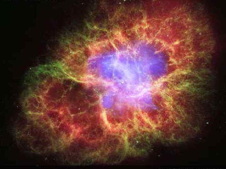 масса звезды > 1, 4 массы Солнца: • силы гравитационного сжатия очень велики • плотность вещества достигает миллиона тонн в см 3 • выделяется огромная энергия – 10^45 Дж • температура – 10^11 К • взрыв Сверхновой звезды • большая часть звезды выбрасывается в космическое пространство со скоростью 1000 -5000 км/с • потоки нейтрино охлаждают ядро звезды - Нейтронная звезда • Магнетары