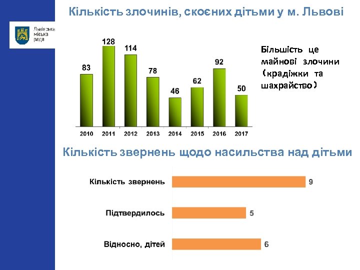 Кількість злочинів, скоєних дітьми у м. Львові Більшість це майнові злочини (крадіжки та шахрайство) Кількість звернень щодо насильства над дітьми
