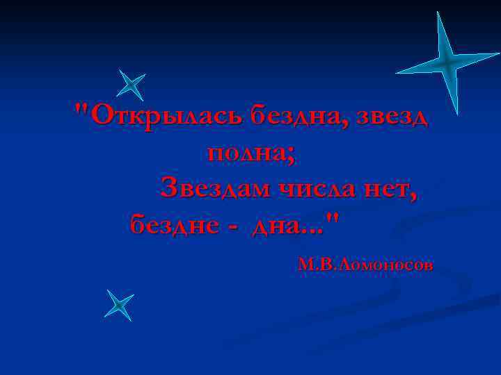 "Открылась бездна, звезд полна; Звездам числа нет, бездне - дна. . . " М. В. Ломоносов